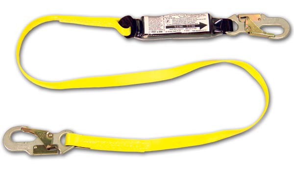 Shock absorbing web lanyards are extremely versatile. They are constructed of rugged, durable, high quality 1 inch synthetic webbing. The shock absorbing device comes in the form of a pack on one end of the lanyard that attaches to the back D-ring on a full body harness.